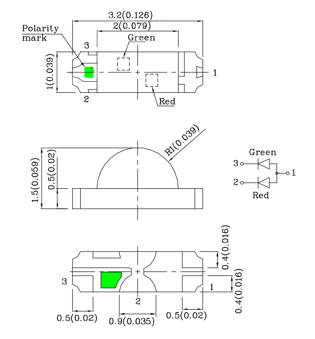 Item # XZ88W-TS22-10K , Right Angle Bi-Color Surface Mount Device (SMD) Chip Light Emitting Diode (LED) Lamps