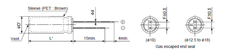 I=0.02CV+25 Where, I : Max. leakage current (µA), C : Nominal capacitance (µF), V : Rated voltage (V) |