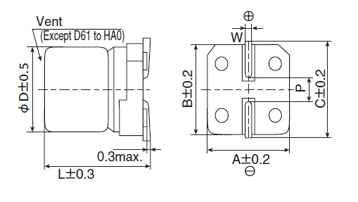 I=0.01CV or 3 µA, whichever is greater. Where, I : Max. leakage current (µA), C : Nominal capacitance (µF), V : Rated voltage (V) |