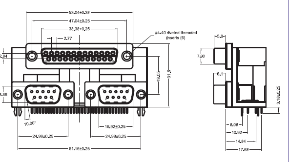 K42X Series 0.750 Inch (in) Center to Center Distance Dual Port Stacked D-Subminiature Connector