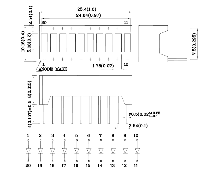 Minimum Luminous Intensity at IF= 10 Milliampere (mA) Current |