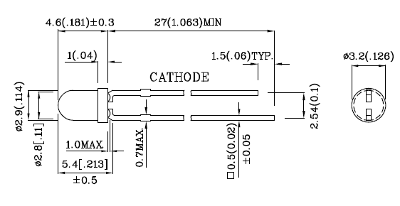 Minimum Luminous Intensity at IF=20 Milliampere (mA) Current |