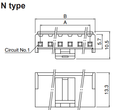 Do not branch in parallel current which exceeds the rated current. If branched in parallel, current imbalance or other problems may develop. If it is absolutely necessary to branch such a large current in parallel, be sure to use contacts made of phosphor bronze. Design the circuits without causing imbalance and provide an extra margin for each circuit. RoHS compliant products are published. Temperature Range: The aforementioned temperature range of this connector is described in JST Standard Product Specification. Maximum temperature registered in UL is 105ºC. Refer to "General Instruction and Notice when using Terminals and Connectors" at the end of this catalog. Contact JST for details. For availability, delivery and minimum order quantity, contact JST. |