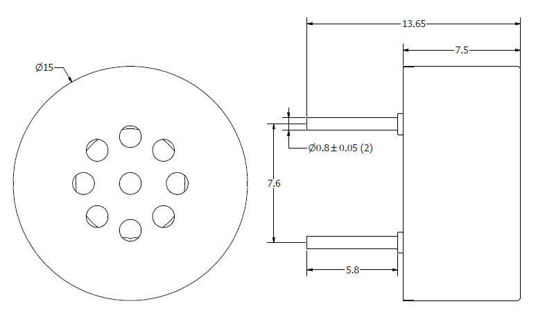 - 15 mm diameter speaker with Neodymium magnet for 87 dB sensitivity