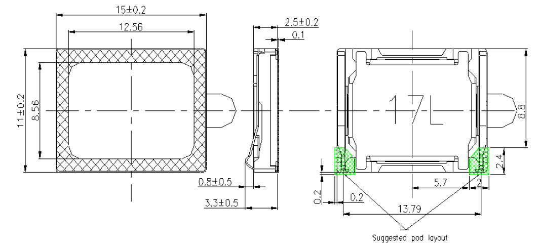 The six-ohm 15 mm x 11 mm AS01506MS-SC15-WP-2-R speaker is designed for high fidelity audio reproduction in the thinnest size possible. Spring contacts and a 2.5 mm thickness make mounting easy.