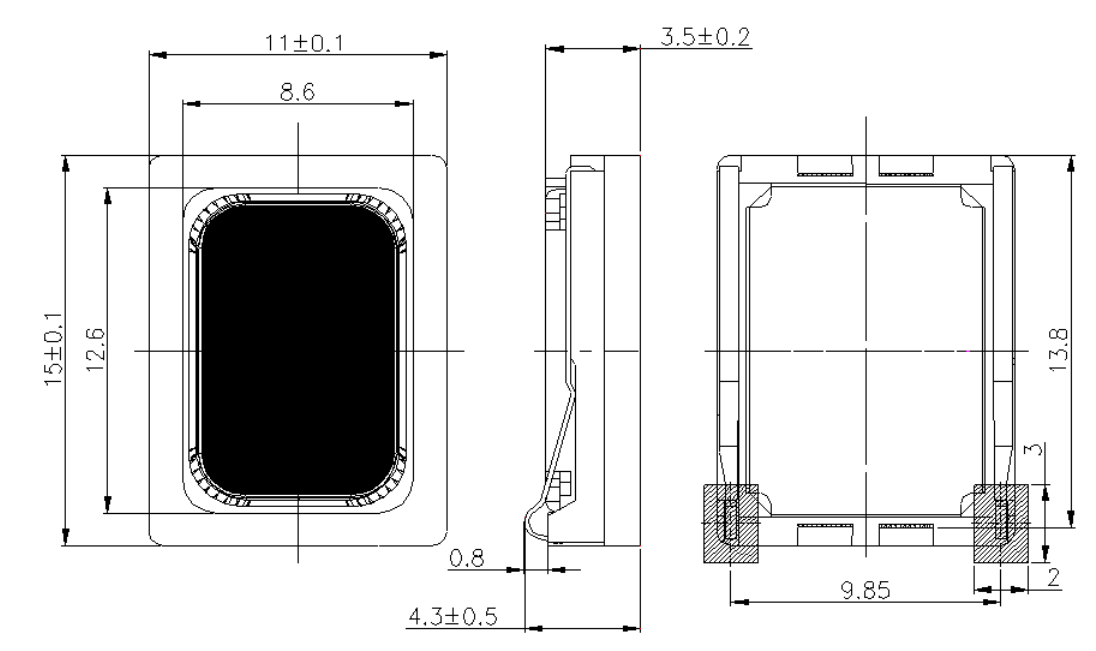 The eight ohm 15 mm x 11 mm AS01508MS-SC11-WP-R speaker is designed for high fidelity audio reproduction in the thinnest size possible-only 3.5 mm thick! Spring contacts provide convenient connection.