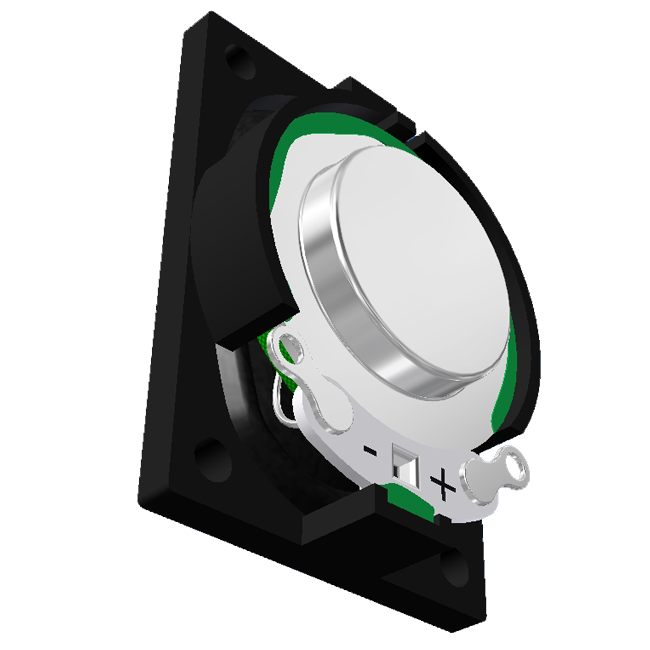 - 40 x 28.5 mm oval speaker with Neodymium magnet for 82 dB sensitivity