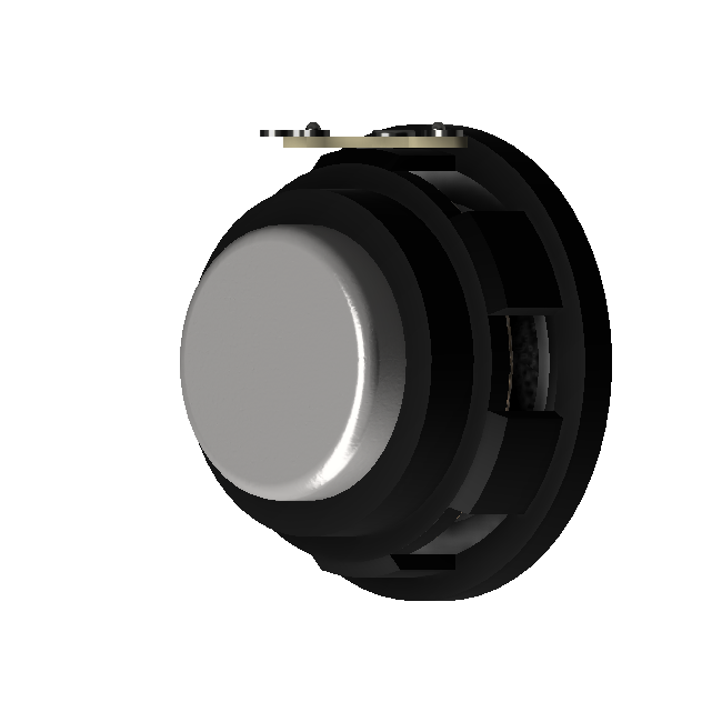 The 40 mm diameter AS04004MR-N50-R is built with a silver poly convex-capped paper diaphragm, rubber surround, and a cupped spider. A Kapton? former reduces moving mass for high sensitivity.