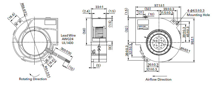 - 1 A-weighted sound pressure level (SPL) at 1 m away from the air inlet.