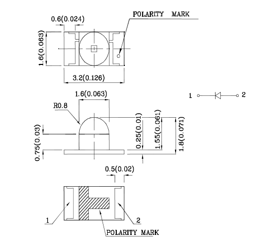 Typical Forward Voltage (VF) at IF=20 Milliampere (mA) Current (Operating Characteristics) |