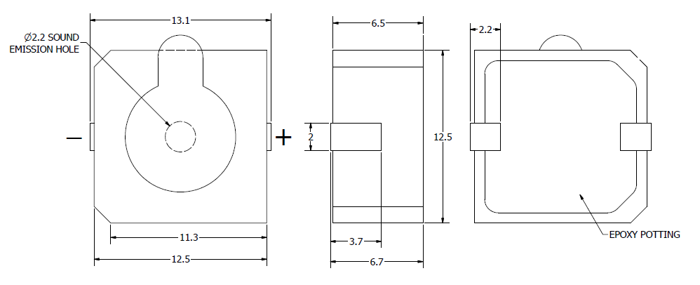 - Top-firing electromechanical transducer designed for 4 to 8 Vp-p.